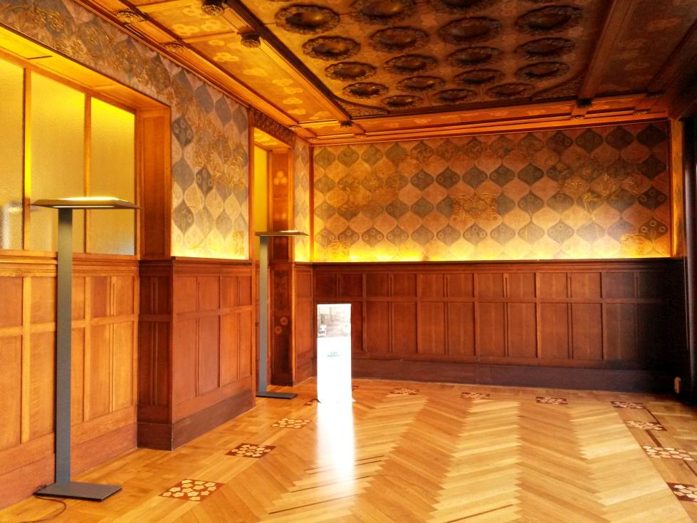 Currently you can visit the first floor which include rooms with very highly decorated wooden walls and ceilings, a hall with sculptures and mosaics and a gallery at the rear of the house with an impressive stained glass window.